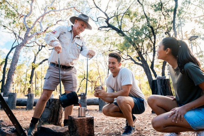 Feast on bacon, eggs, and billy tea