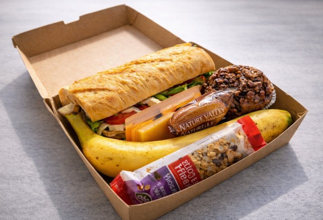 Packed lunch box (baguette, muffin, cheese/crackers, museili bar & fruit) - $30 per person