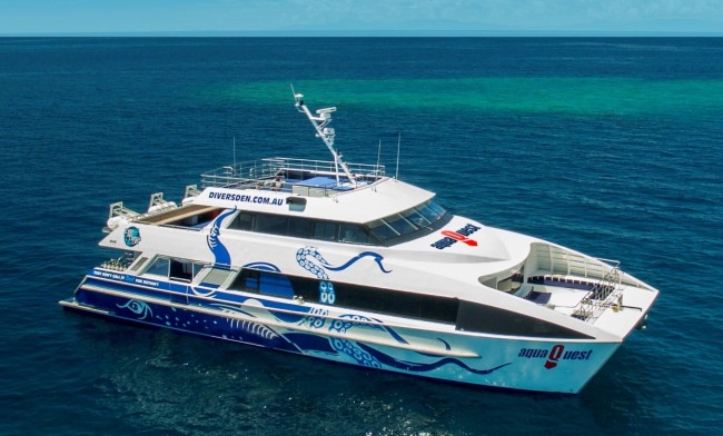 Aqua Quest is a brand new boat based in Port Douglas. With a choice of reef sites at Agincourt, St Crispin and Opal Reef, the Captain will choose the two best sites on the day subject to weather conditions. You will experience up to 5 hours at the reef for your snorkelling and diving activities. Morning tea and lunch is provided along with free guided snorkel tours, free snorkelling equipment and use of wetsuits/lycra suits. Certified divers (all equipment included) can enjoy dives guides for free, or have the freedom to dive unguided. Nitrox is available ($10 per fill). There is also the option of introductory diving for those with no experience. Please note all diving is subject to medical conditions.