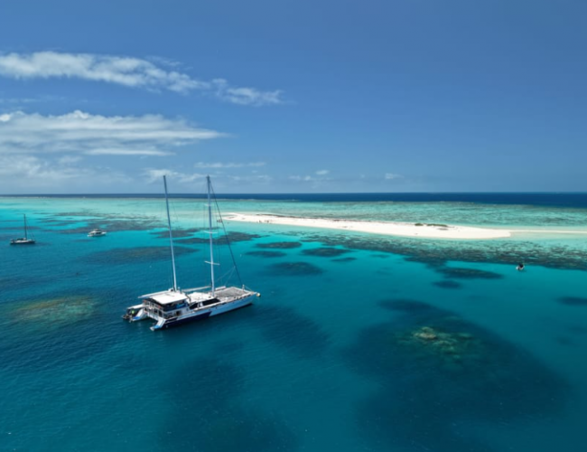 Set sail aboard the beautiful 32 metre sailing catamaran, Ocean Spirit, to experience Michaelmas Cay's unique reef environment - a pristine sand cay surrounded by fringing reef and a protected sanctuary for migratory seabirds. Enjoy snorkelling in the cay's protected shallow waters, cruise in the semi-sub for a diver's view of the reef, watch the fish feeding presentation, observe the bird life or just chill out on Ocean Spirit's spacious decks or on the beach.